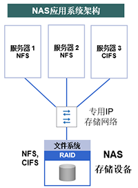 NAS(Network Attached Storage)网络存储,简单的说,NAS是通过TCP/IP以太网络连接的存储设备。NAS存储设备通过标准的网络拓扑结构(Ethernet)连接到一群计算机上,而不象FC SAN那样需要昂贵复杂的光纤交换机,NAS使用普通的以太网络交换机,即插即用。
